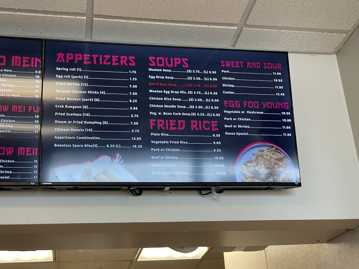 The menu at China Wok Chinese Restaurant on 1170 Mountain Bay Dr in Pulaski offers a classic and extensive selection that caters to a wide range of tastes. For starters, the Appetizers such as Spring Roll, Egg Roll, Fried Shrimp Teriyaki, Chicken Sticks, and Fried Wonton provide a satisfying prelude to the meal. Soup lovers can choose from comforting options like Wonton Soup, Egg Drop Soup, Hot & Sour Soup, or the Wonton Egg Drop Mix, as well as the hearty Chicken Rice Soup. The Fried Rice section spans from Plain Rice and Vegetable Fried Rice to Pork, Beef, or Shrimp, and the indulgent House Special. For those craving sweet and tangy flavors, the Sweet and Sour options include Pork, Chicken, and Shrimp Combo. Chicken entrees range from Chicken W. Broccoli and Chicken W. Mushrooms to Chicken W. Mixed Veggies, Chicken W. Black Bean Sauce, and Chicken W. Snow Peas, ensuring variety for any preference. The Chef’s Specialties-Happy Family, Seafood Delight, Triple Delight, Four Season, and Beef & Scallops-bring a creative twist to traditional favorites. Noodle enthusiasts can enjoy Lo Mein in styles like Plain, Pork or Chicken, Vegetable, Beef or Shrimp, and the House Special, while Chow Mei Fu selections include Vegetable, Pork, Beef or Shrimp, House Special, and Singapore. Combo Meals such as Chicken or Pork Chow Mein, Shrimp or Beef Chow Mein, Moo Goo Gai Pan, Boneless Spare Ribs, and Shrimp W. Broccoli offer hearty portions perfect for lunch or dinner. To round out the meal, Side Orders like White Rice, Fried Rice, Fortune Cookies, and Sweet and Sour Sauce complement the main dishes, alongside simple but flavorful options like Vegetable, Beef, Mixed Vegetables, Sautéed Broccoli, and Home Style Bean Curd. Overall, the menu delivers a well-rounded combination of classic Chinese staples and creative specialties, making it approachable for both regulars and first-time diners.